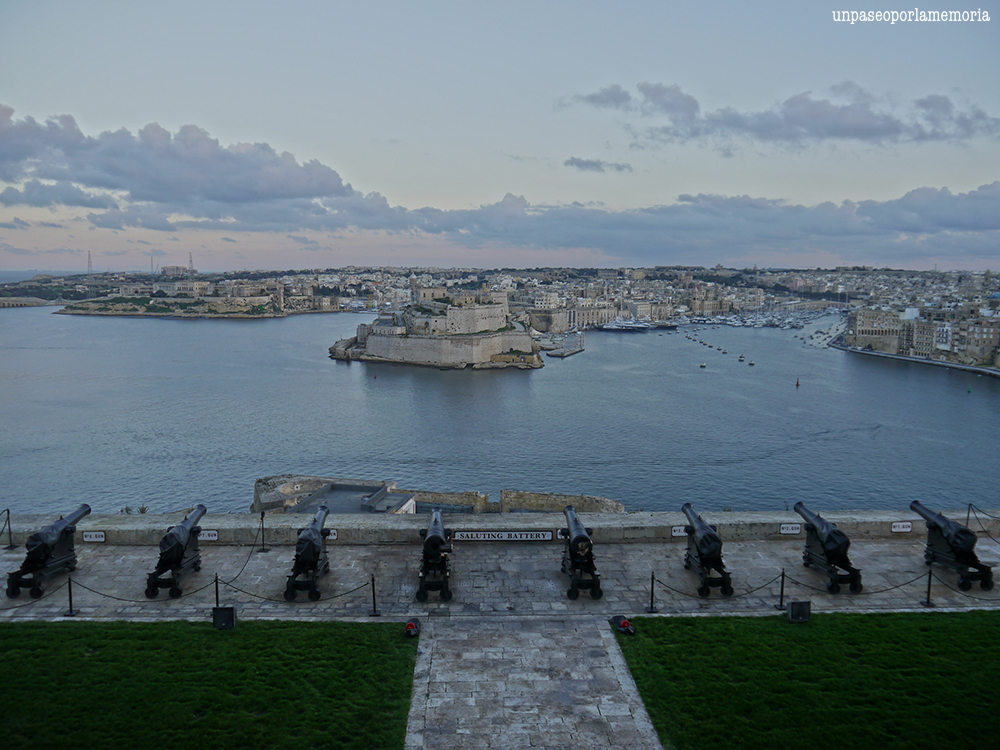 Saluting Battery frente al Gran Puerto de Malta y los municipios de Senglea, Birgu y Kalkara
